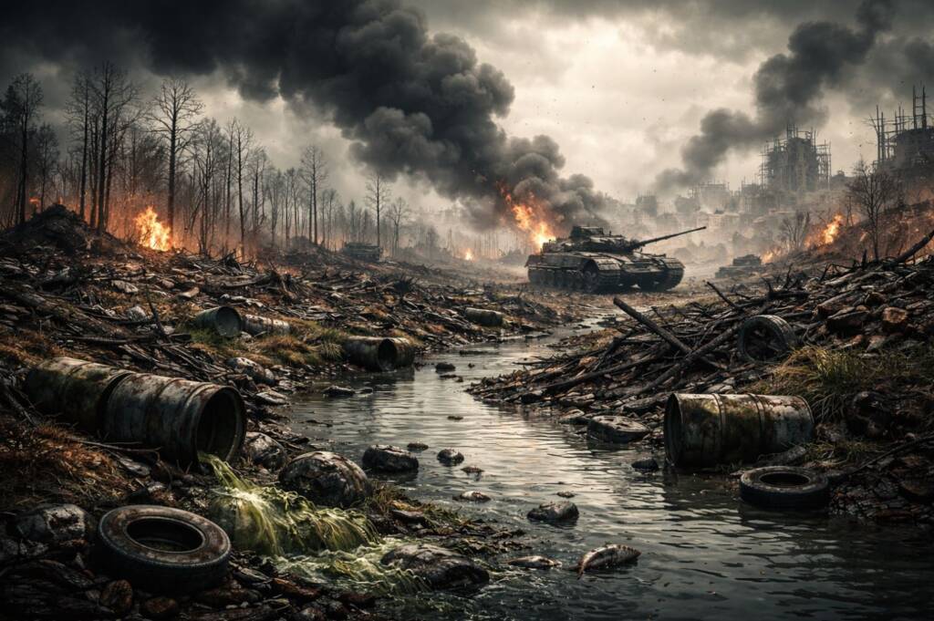 Konflikty zbrojne niszczą ekosystemy oraz infrastrukturę środowiskową. Dobrym przykładem pozostaje wojna w Ukrainie.